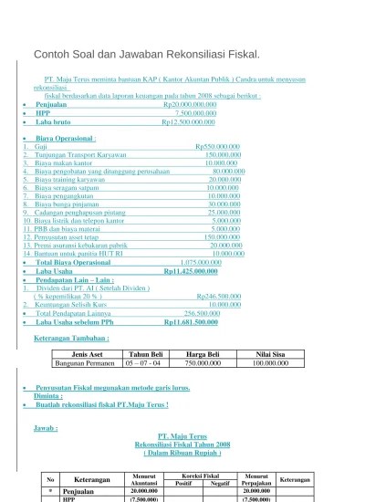 rekonsiliasi fiskal serta tujuan dan contoh soal beserta jawabannya.