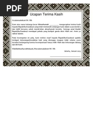 Doa 40 hari orang meninggal islam nusagates. contoh surat undangan uleman tahlil 40 100 hari bahasa sunda doc. surat undangan tahlil 7 hari terkait: contoh surat undangan tahlilan & contoh undangan tahlil tahlilan 7 hari 40 hari 100 hari. contoh surat undangan tahlil digunakan untuk mengundang saudara, tetangga, sahabat dan kerabat untuk datang ke kediaman kita dalam acara tahlilan.perlu diingat dalam pembuatan surat undangan harus lengkap supaya pihak yang diundang paham dan merasa penting untuk hadiri. Attribution non commercial by nc format tersedia. contoh undangan tahlil 100 hari lengkap. contoh surat undangan tahlilan 7 hari. If you are author or own the copyright of this book, please report to us by using this dmca report form. ( truton.info ) untuk membuat contoh surat undangan tahlil 40 100 1000 hari haul ini lebih menarik ts udah nambahin border dan sedikit hiasan di sudutnya cek 37 ideundangan walimatul khitan word. surat undangan seprti contoh dibawah bisa dipergunakan untuk undangan tahlil, yasinan, pengajian rutin dan lainlain. 7 contoh surat undangan tahlil / tahlilan 3 hari, 40 hari, 100 hari, 1000 hari &