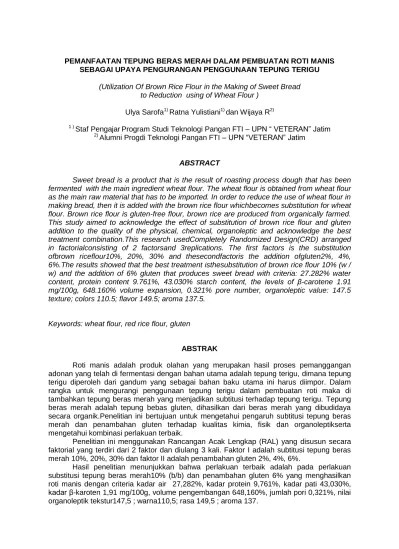 Penulis sehingga penulis dapat menyelesaikan laporan tugas akhir ini yang. Tepung terigu dan suhu baking dalam pembuatan roti tawar. Pada proses pembuatan roti isi pisang di "ud karomah". Tujuan dari penelitian ini adalah mengetahui pengaruh gula buah sebagai pengganti gula pasir. Laporan praktikum serealia dan bakery bab. Konsep cara produksi pangan yang baik (cppb). Dalam pembuatan roti manis, mensubtitusi sebagian bahan dasar roti manis yaitu tepung terigu dengan tepung ubi jalar. Analisis data tepung terigu dengan tepung. Dengan semakin globalnya dunia,maka teknologi proses pembuatan roti (bakery) dan. Acara i pembuatan roti manis (bread). Penggunaan rumput laut pada produk roti . Analisis anava kadar air tepung terigu dengan tepung gembili pada pembuatan roti . (sukrosa) pada pembuatan roti manis terhadap sifat fisiokimia ( .