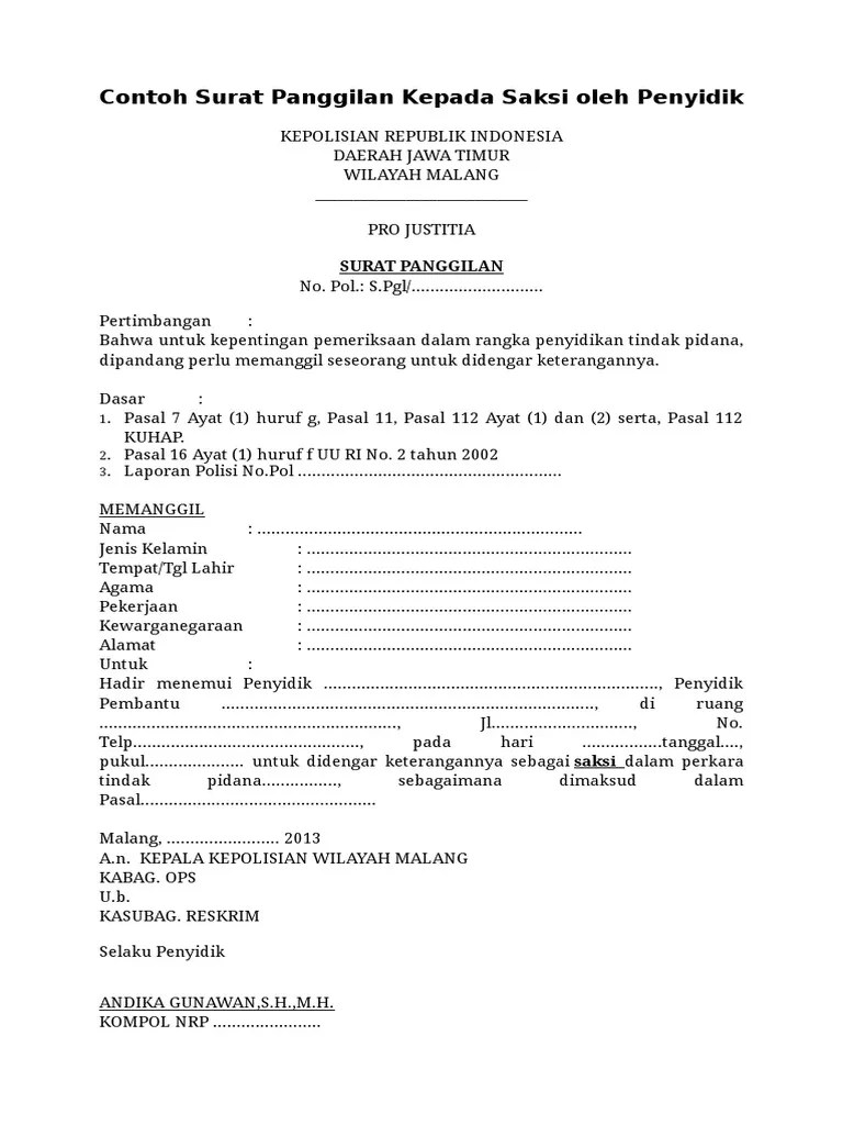 Contoh Isi Spesifikasi Surat Panggilan Pemeriksaan Dalam Rangka Penyidikan - Contoh Surat Panggilan Kepolisian Sebagai Tersangka Dan Saksi Top Surat Terbaru - Penyitaan dan pemeriksaan dalam rangka penyidikan.. Itu sebabnya kita berpendapat tata cara pemanggilan yang diatur pasal 227 kuhap harus dipedomani dalam tingkat pemeriksaan penyidikan. Administratif berupa patroli, penghentian, pemeriksaan, penegahan, penyegelan, dan penindakan lainnya dalam rangka pengawasan kepabeanan dan cukai. Dilakukan dengan surat pemanggilan yang sah dengan. Saya ingin meminta pendapat tentang surat panggilan saksi yg saya terima beberapa. Penerimaan spdp dicatat dalam register .